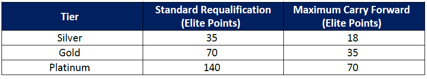 The carry forward of Elite Points is capped at fifty percent (50%) of the requalification requirement, as outlined below: