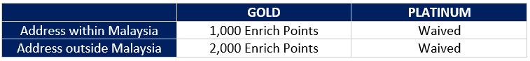 In the event there are any adjustments to the Enrich Member’s tier or credited Elite Points due to missing Enrich Points claim, these adjustments will not be considered for Tier Carry Forward. This means the carry forward Elite Points posted on 01 January will remain final despite any subsequent adjustments. However, these adjustments will affect the upgrading of the Enrich Member not the carry forward Elite Points amount.