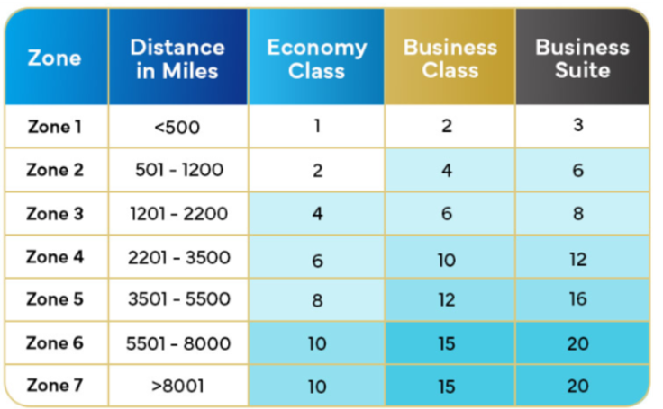 - Elite Points is calculated based on Zone (flight sector distance in miles i.e., Ticketed Point Mileage-TPM) and the Cabin class of travel (Business Suite, Business or Economy) on eligible flights.