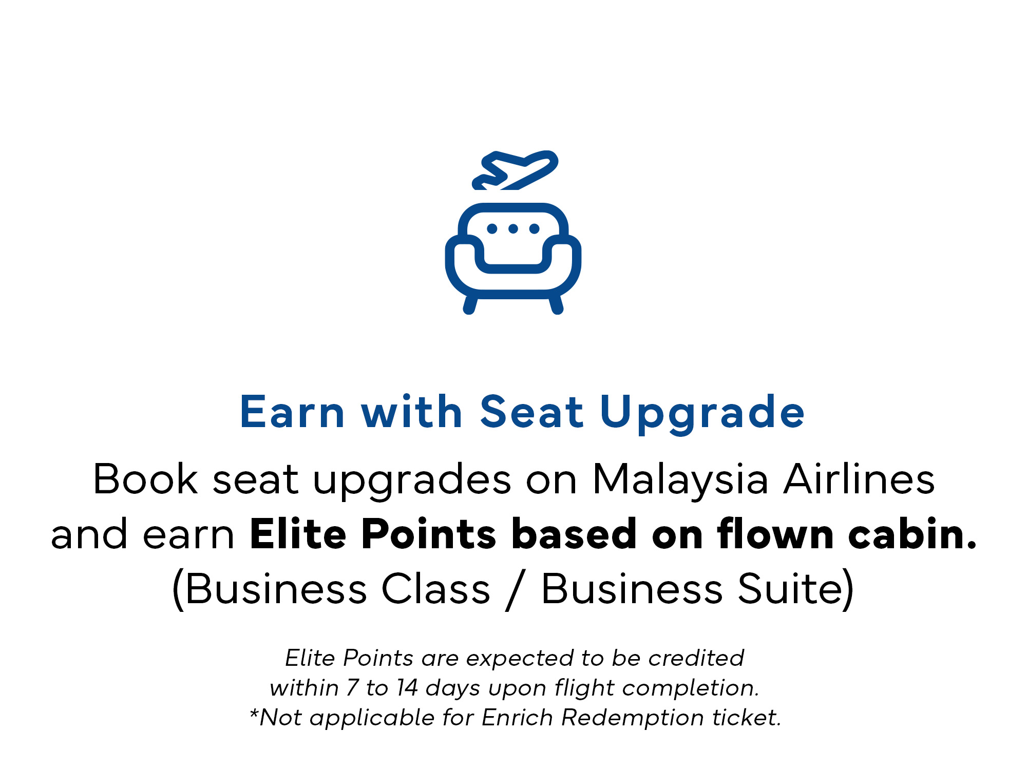 - Enrich members earn Enrich Points based on the original ticket fare. Elite Points are awarded based on the seat upgrade.