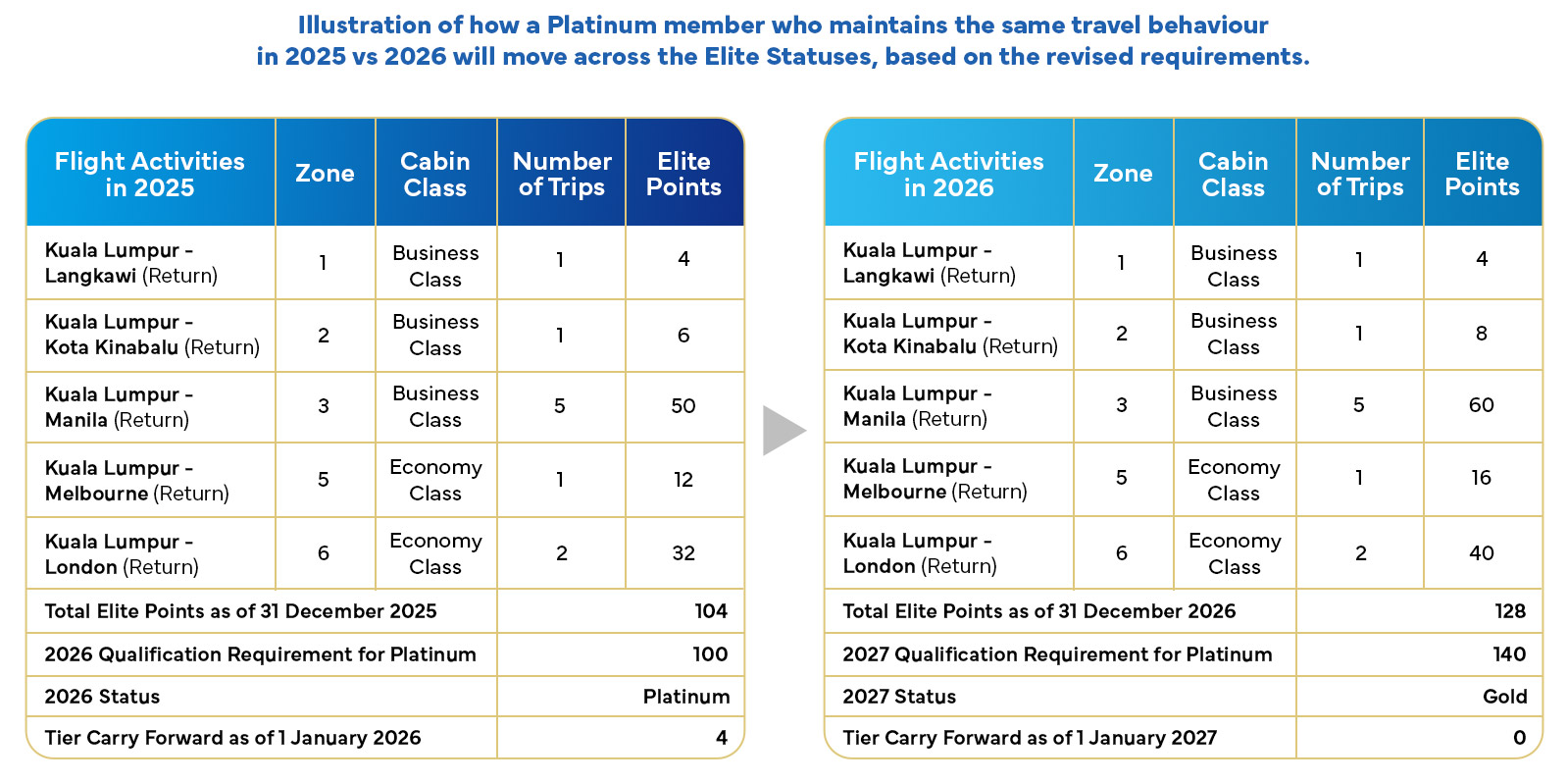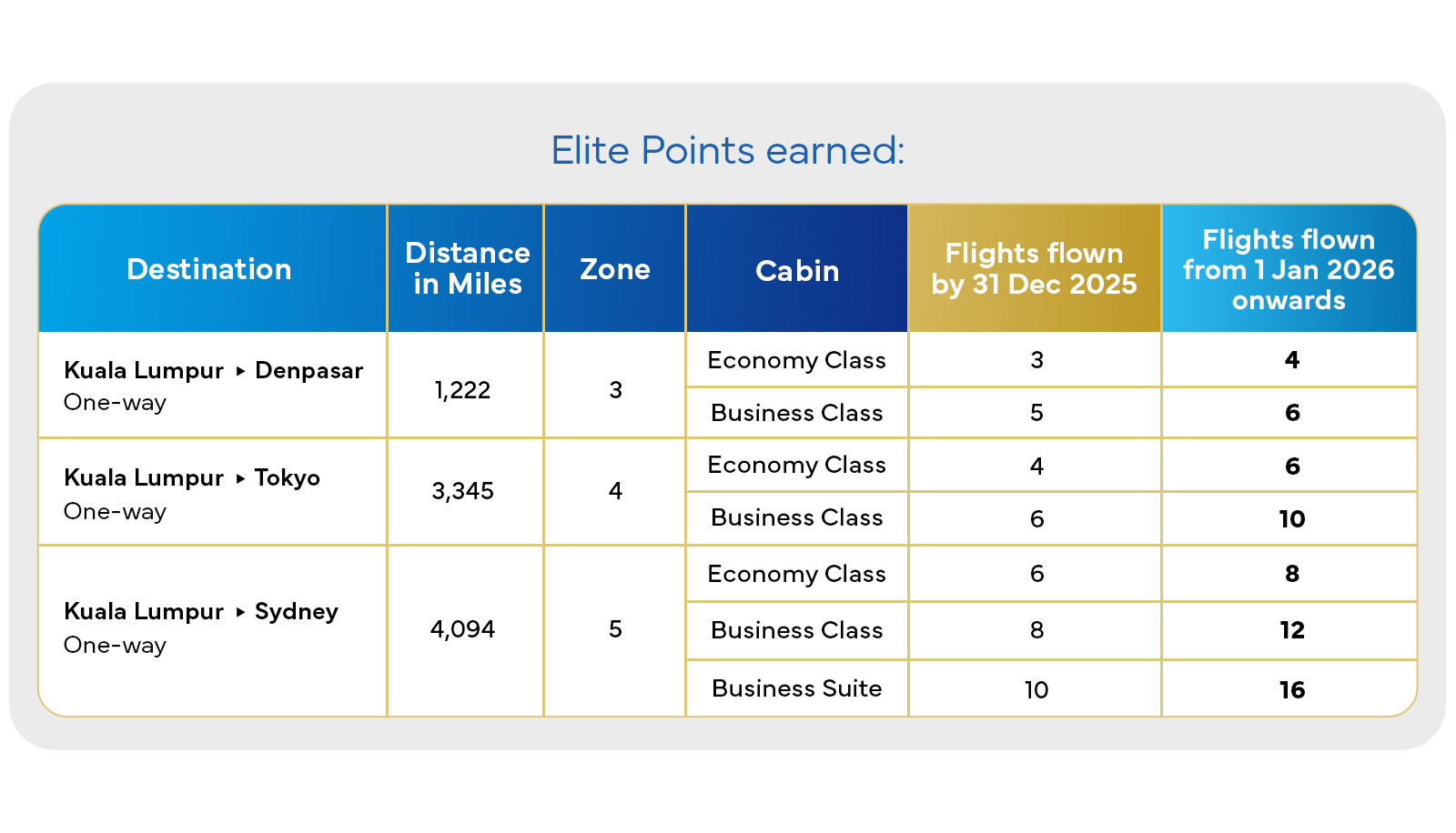 Note: The table above has been updated in line with the revised Elite Status requirements, effective 1 January 2026