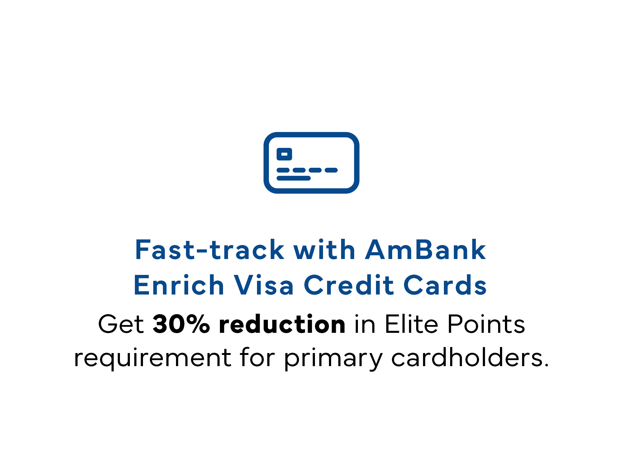 - Fast track Elite tier status is currently exclusive to principal AmBank Enrich Visa Credit cardholders, offering a 30% reduction in required Elite Points. The card available only to Malaysian citizens and residents.