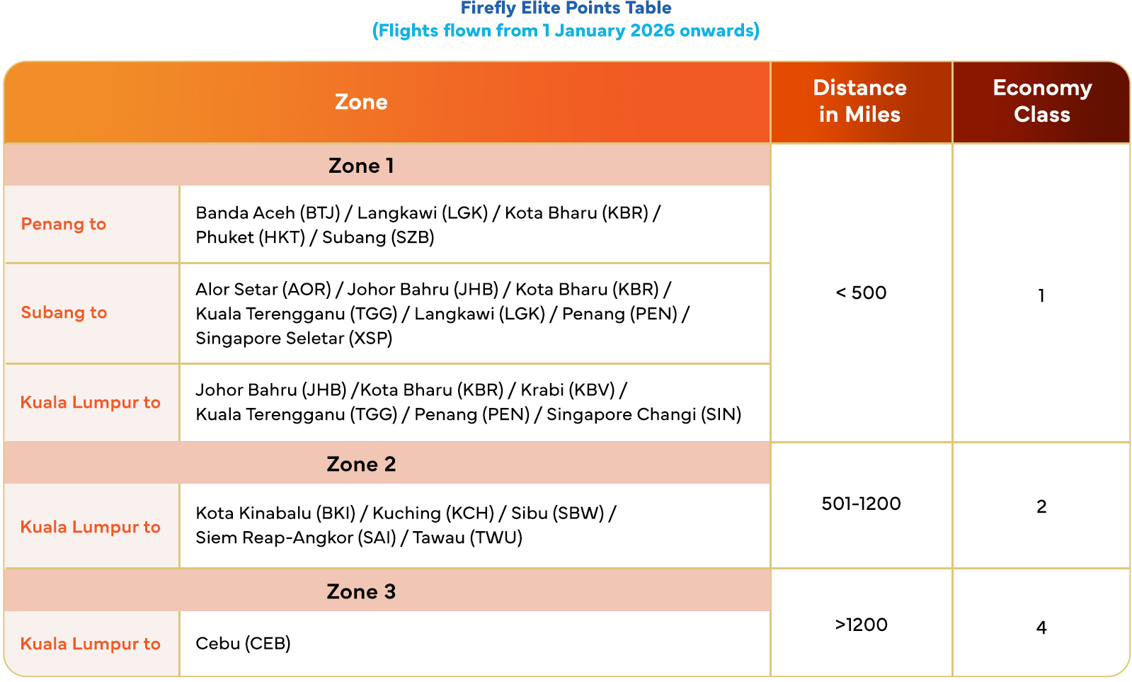 Example: Kuala Lumpur – Tokyo (Economy Class) = 6 Elite Points; Kuala Lumpur – Tokyo (Business Class) = 10 Elite Points.