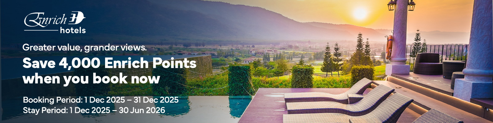 Choose from over 600,000 properties worldwide and wherever you go, keep earning or redeeming Enrich Points for your next stay!