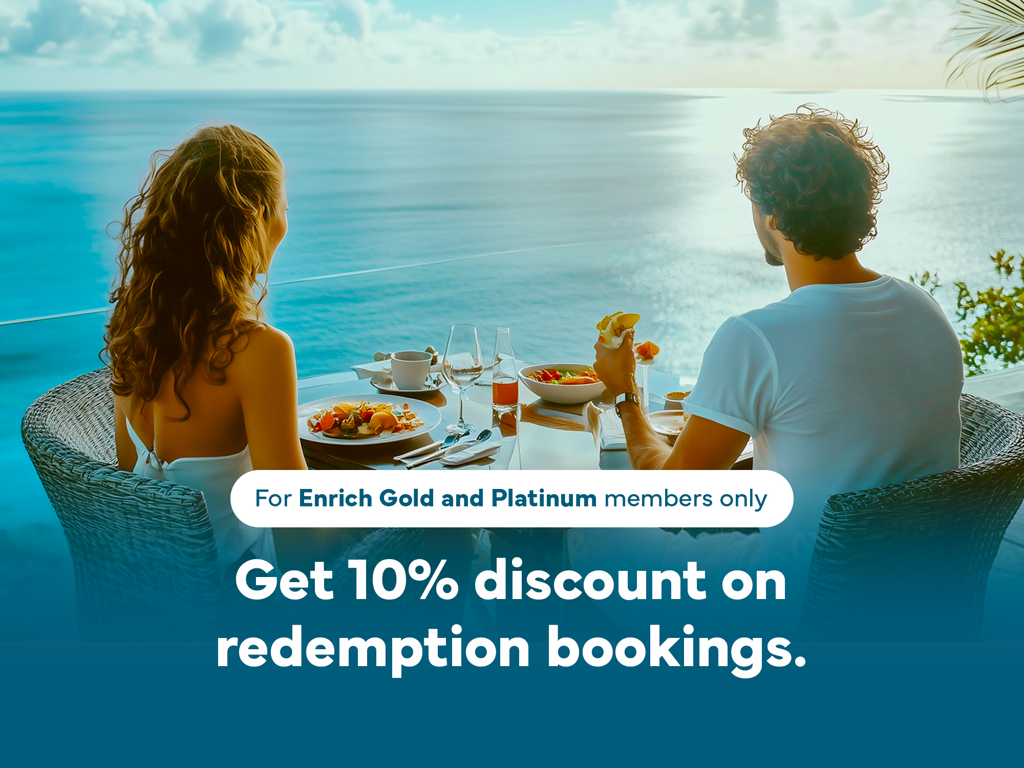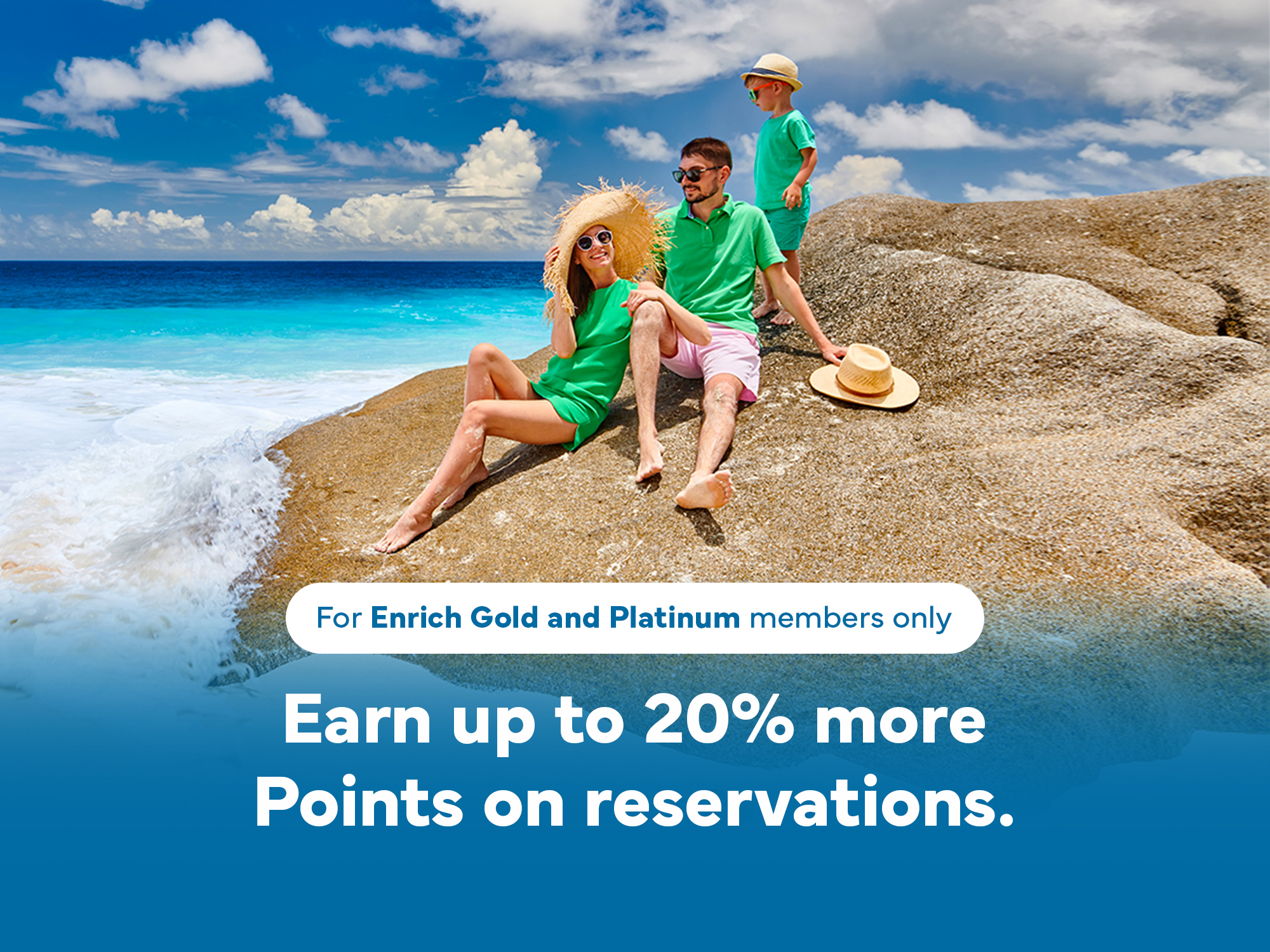 Books stays on Enrich Hotels and earn up to 15,000 Enrich Points per night