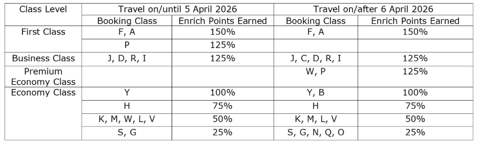 Flights and booking class that are not eligible to earn Enrich Points will not earn Elite Points.