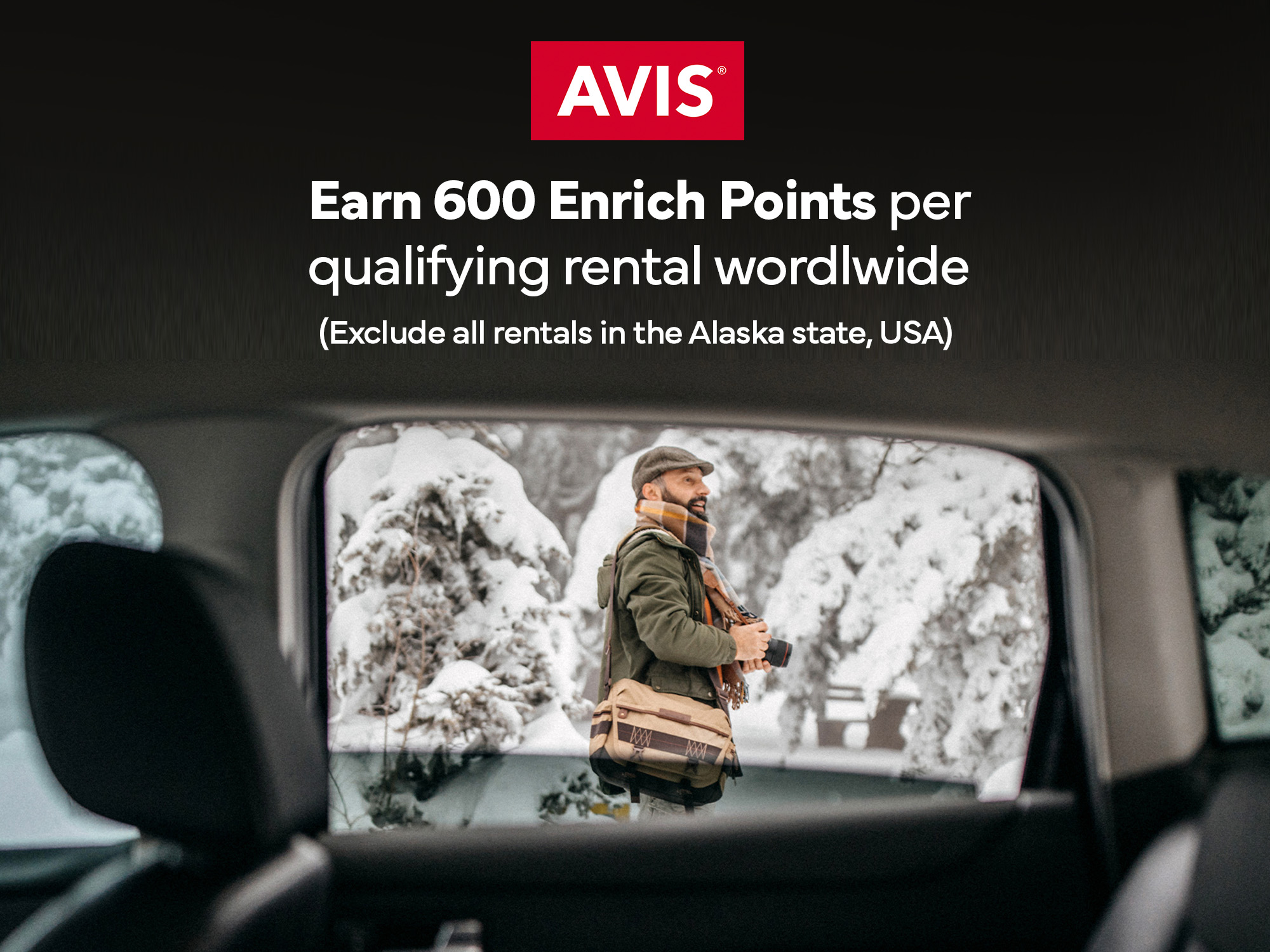 - Enrich Points can only be earned on one frequent flyer program for each qualifying self-drive rental at participating Avis locations.Â